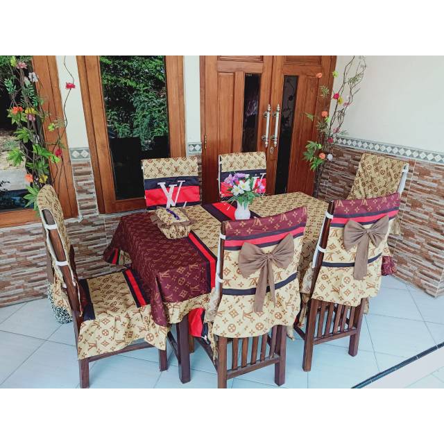 6 Set Sarung Kursi Meja Makan Taplak Meja Makan Set Sarung Sumber : shopee.co.id